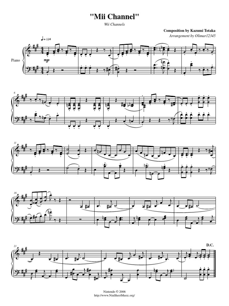 Mii Channel Theme Music Sheet Download Topmusicsheet Com