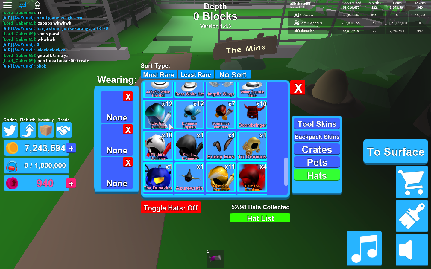 Best Hats In Mining Simulator