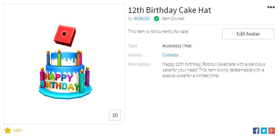 Roblox How To Get 12th Birthday Cake Hat Free Code Expired